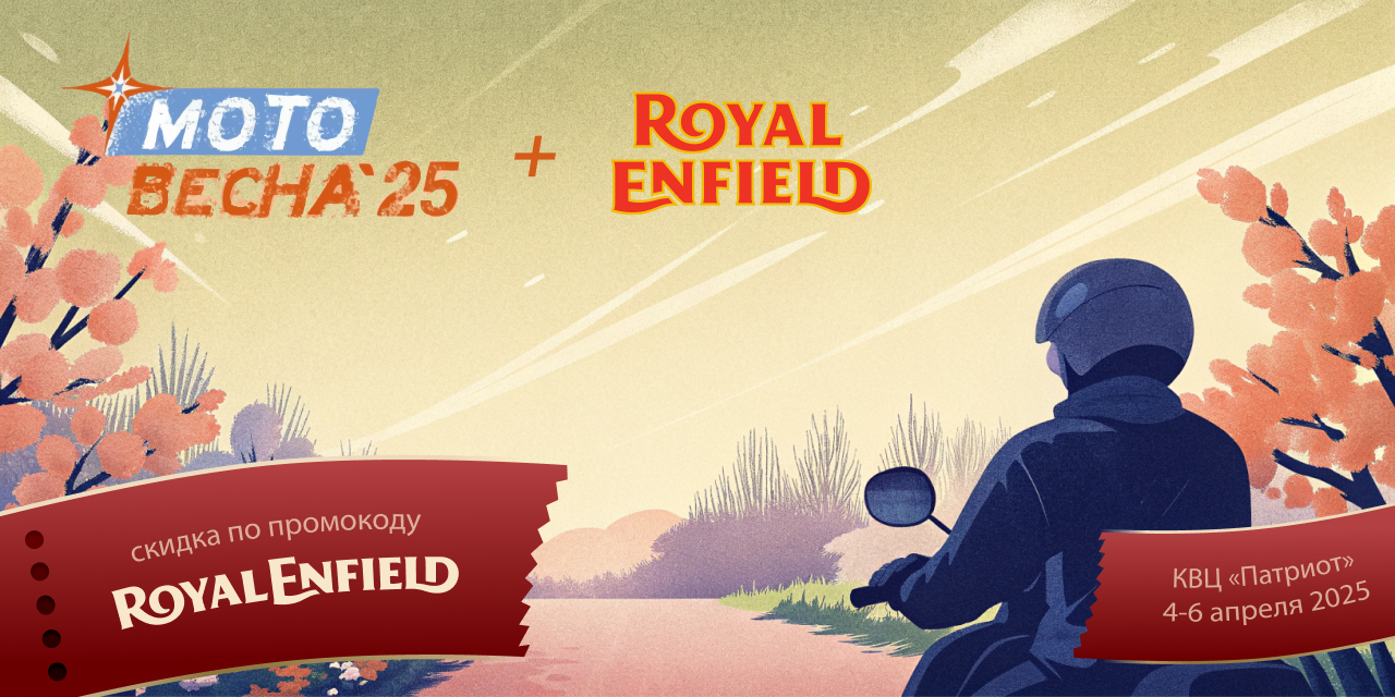 Специально для Вас скидка по промокоду "RoyalEnfield" при покупке билетов на сайте motospring.ru и в социальных сетях выставки vk.com/moto.vesna и t.me/motorrrhub, действует до 03.04.2025 включительно.